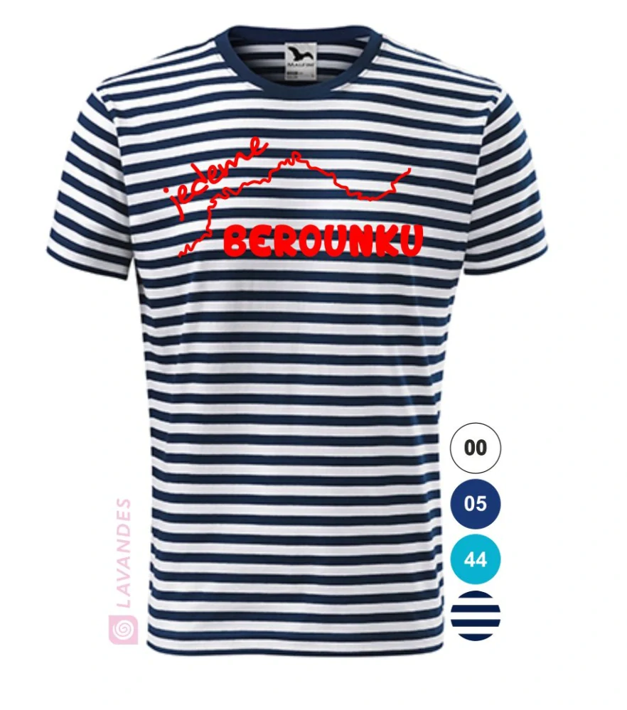 Pruhy jsou v kombinaci bílá a námořní modrá.