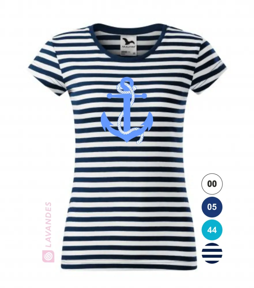 Dámské tričko Sailor, s potiskem, ze 100% bavlny s kratšími rukávy. Tričko je pohodlné a vhodné na denní běžné nošení.