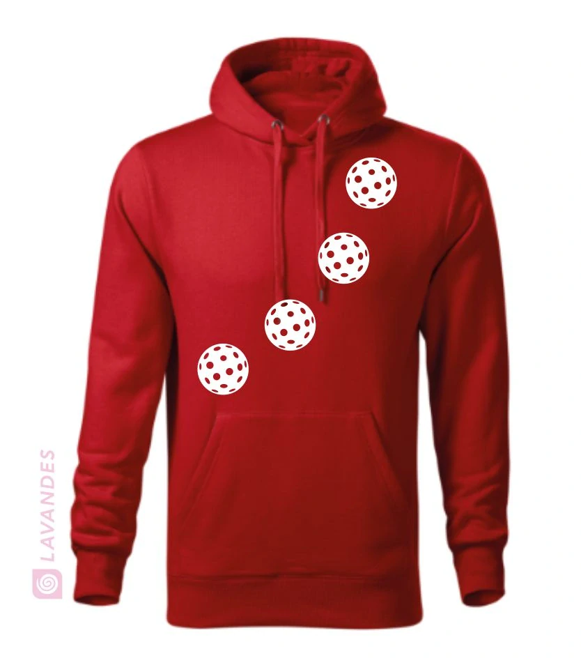 Na předním díle kapsa "klokanka". Dolní lem a manžety rukávů jsou z žebrového úpletu.