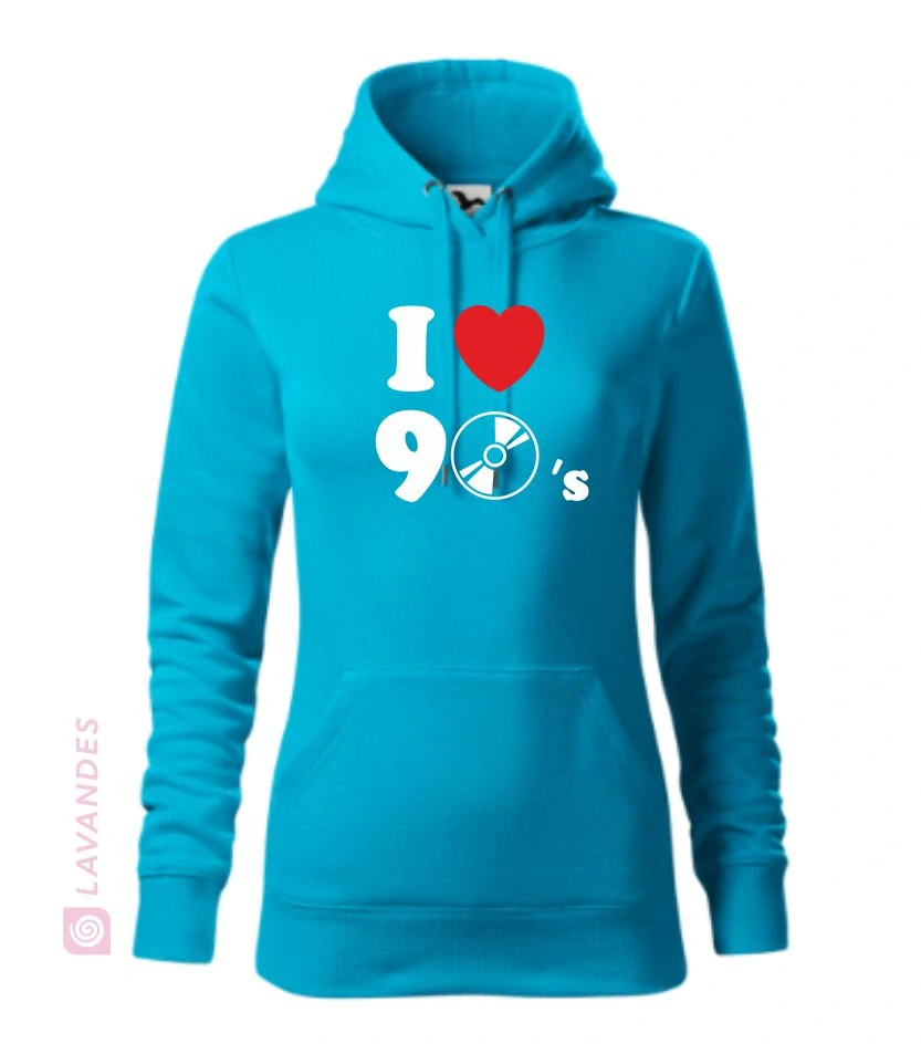 I love 90´s mikina, tyrkysová, S