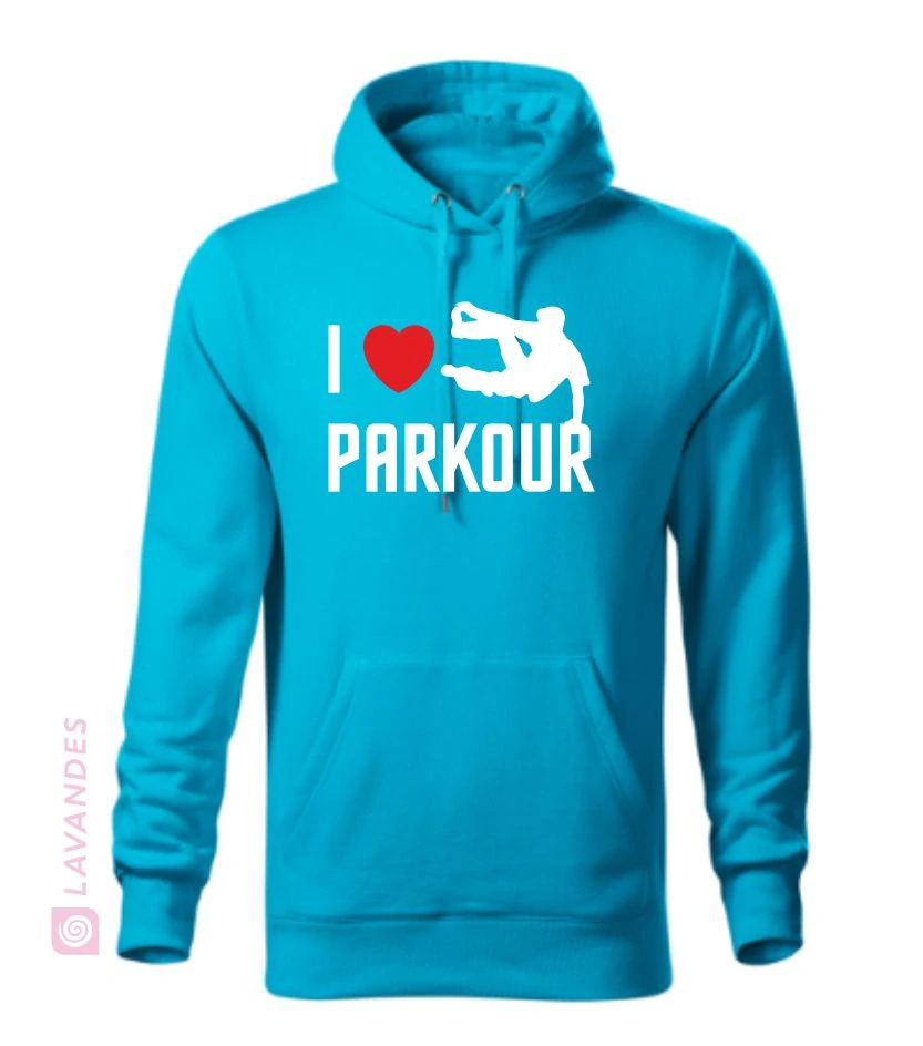 I Love Parkour mikina, tyrkysová, XLDo týdne750 Kč/ ks620 Kč bez DPH