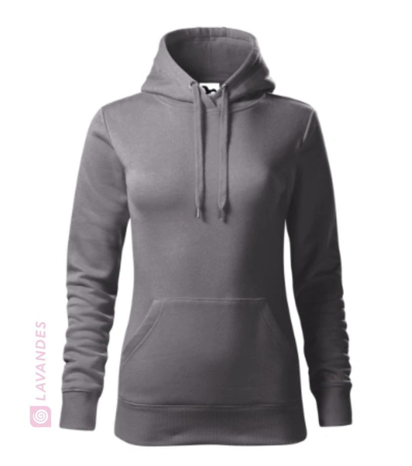 Dámská mikina Cape klasického střihu, s kapucí s podšívkou a šňůrkou na stažení.