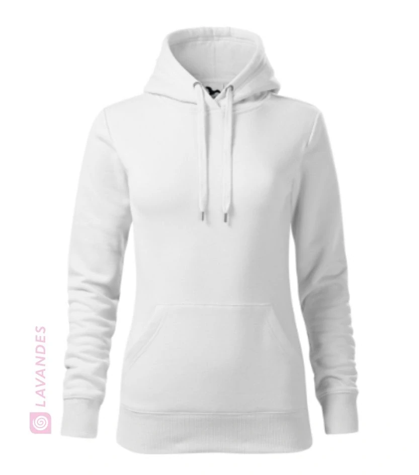 Dámská mikina Cape klasického střihu, s kapucí s podšívkou a šňůrkou na stažení.